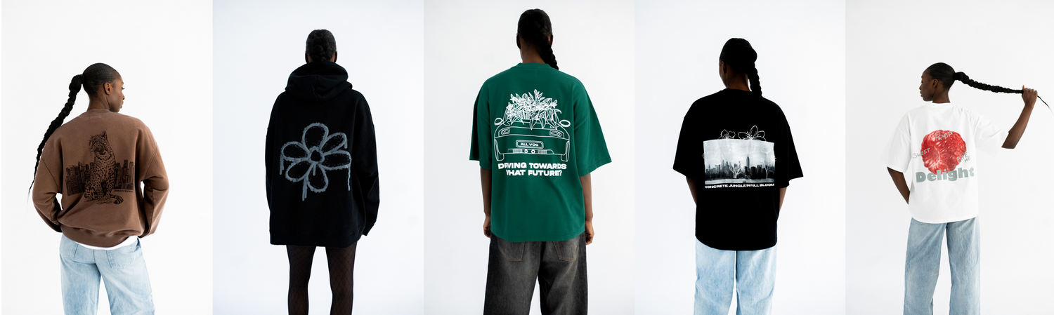 Unsere Urban Eden Kollektion vereint die Gegensätze von urbanem Leben und der Kraft der Natur, aber auch die Menschen, die in dieser Welt leben. Sie erzählt von der Verbindung von Stadtelementen mit lebendigen Naturmotiven und dem Einfluss, den wir als Gesellschaft auf unsere Umgebung haben.